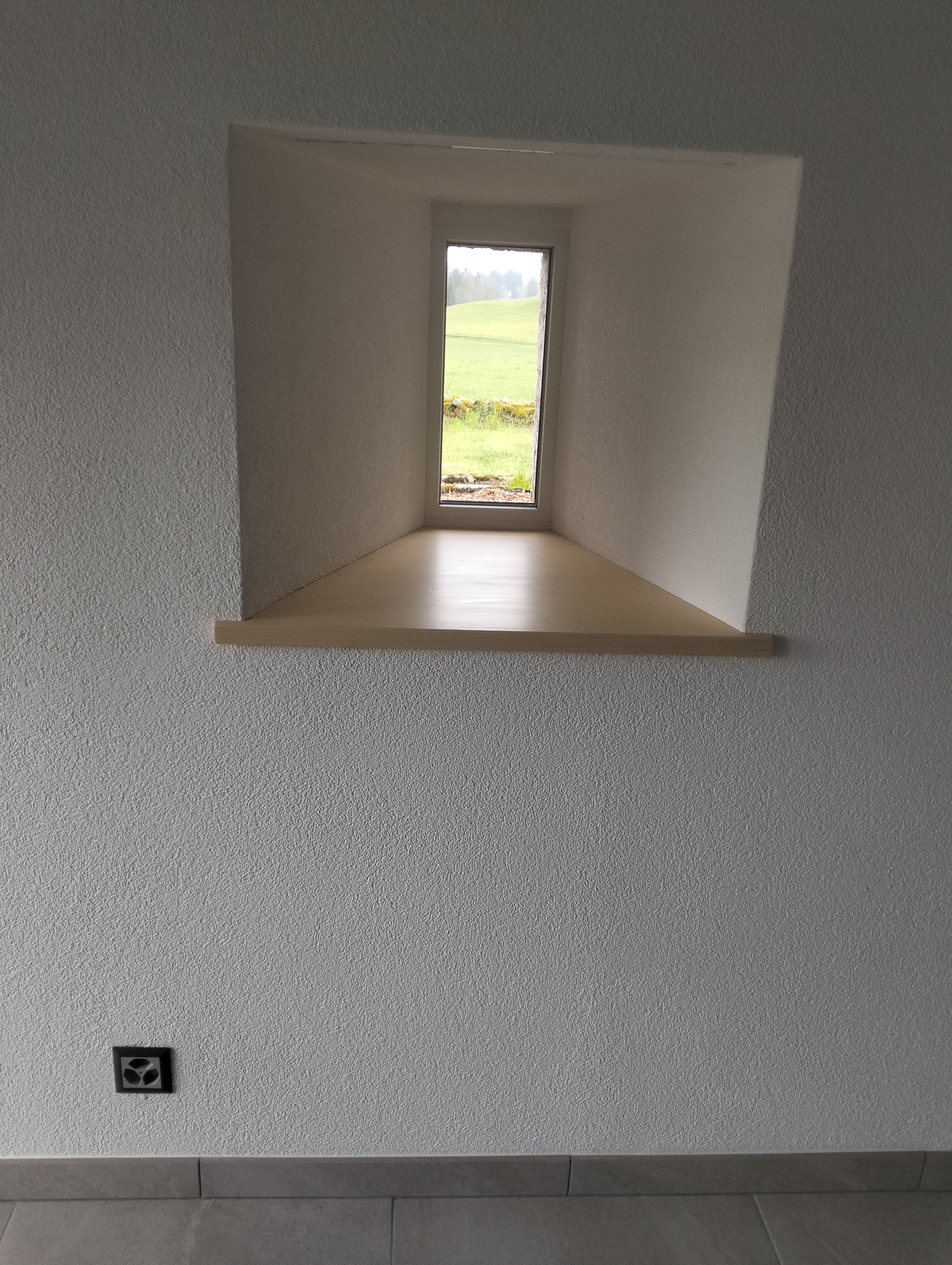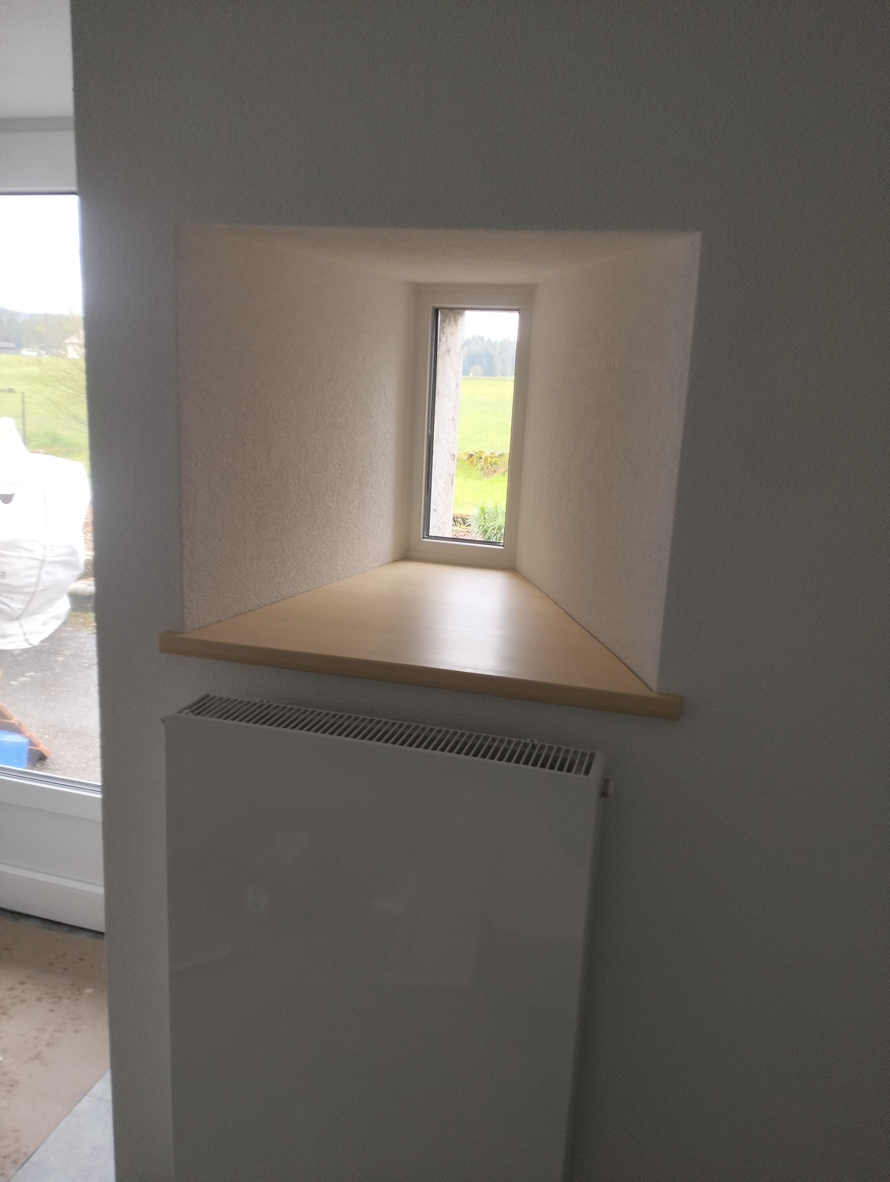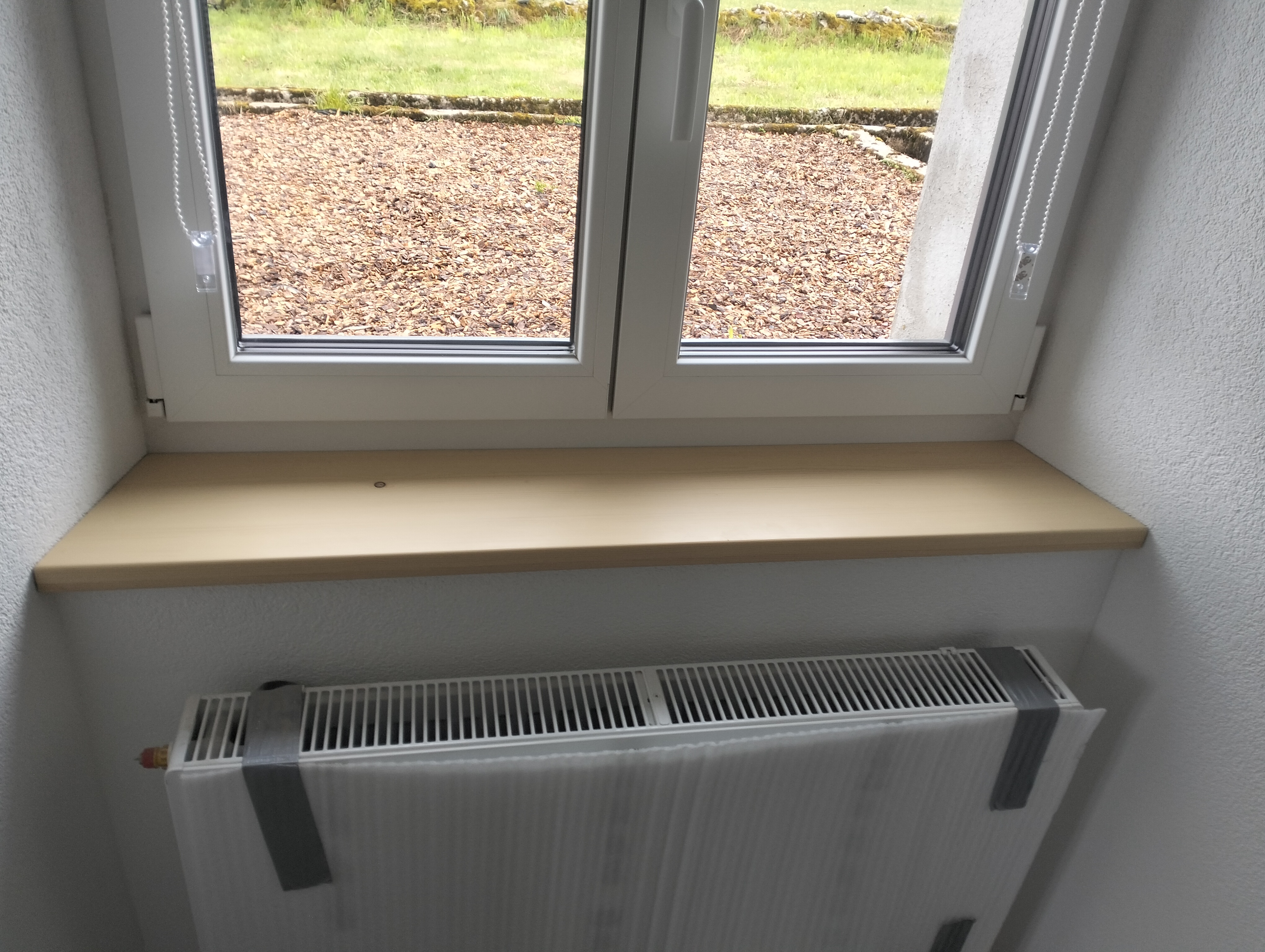 Fabrication et pose de tablettes de fenêtre en sapin, dont le bois provient de la forêt du client
